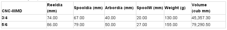 CNC-IIIMD stands for double click stop and medium drag. B or X stands for frame cutting. It has both double click stop power and a very fine drag power generated by carbon disc and one way ball bearing. It also has right and left hand exchange option.
